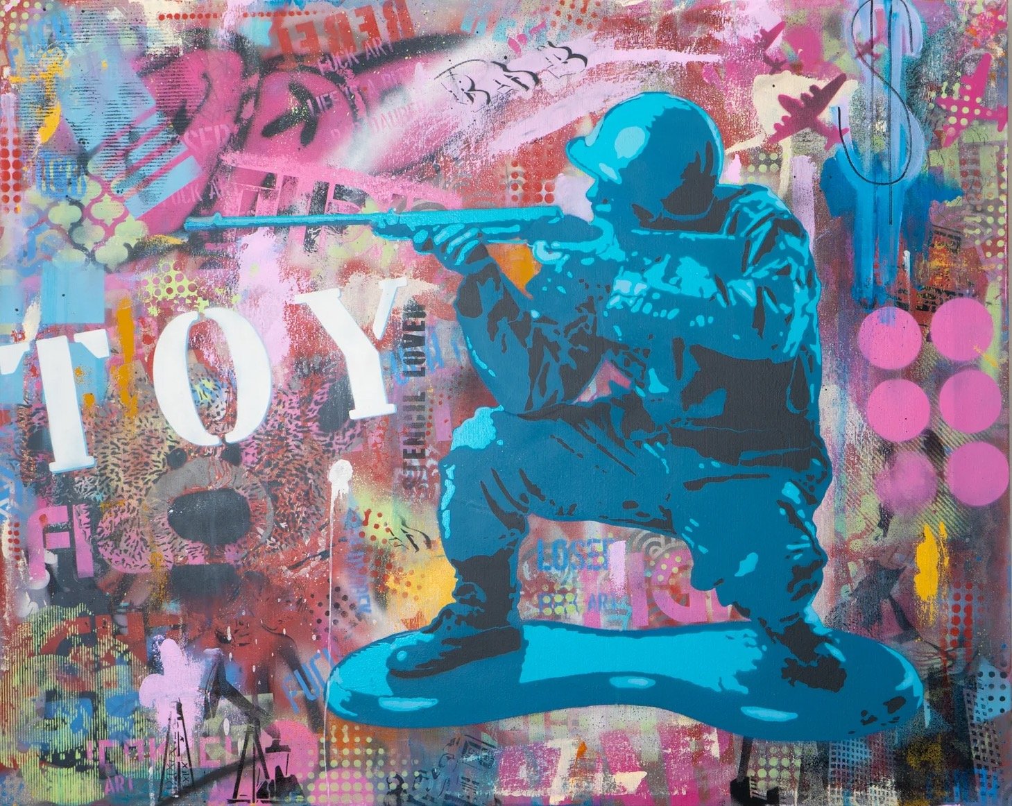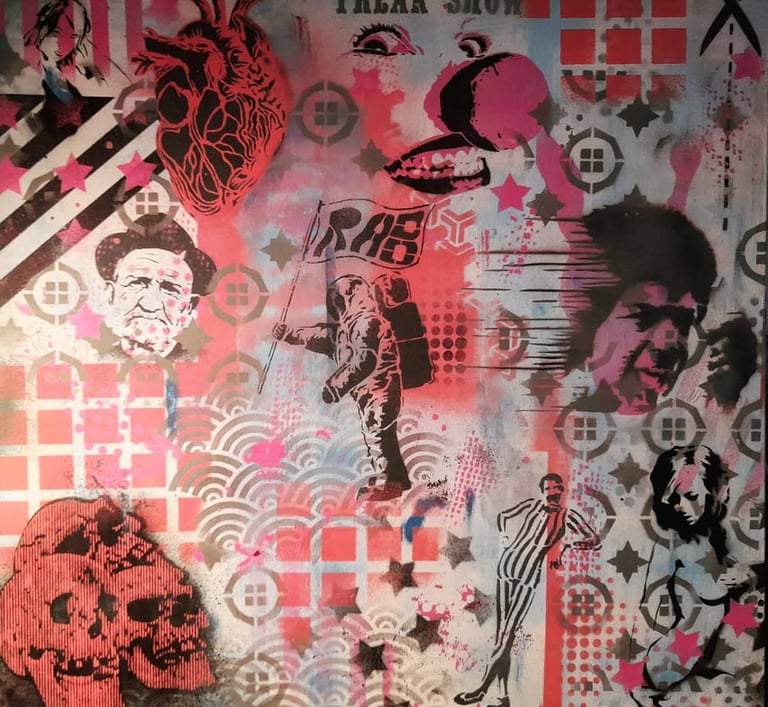 Rab Dauber, bresciano doc, è tra i pionieri della street art in Italia – anche se lui preferisce definirsi "imbrattatore urbano". Attivo dagli anni 2000, le sue opere nascono da una ricerca visiva poliedrica: dalla natura alla cultura pop degli anni '80 e '90, con ispirazioni da film cult come I Goonies e Donnie Darko, fino a temi sociali rivisitati in chiave provocatoria, come senzatetto o foto di famiglie con maschere antigas – un richiamo al mondo d'oggi, segnato da guerre e sofferenze, che spinge a una profonda riflessione sulla fragilità umana.